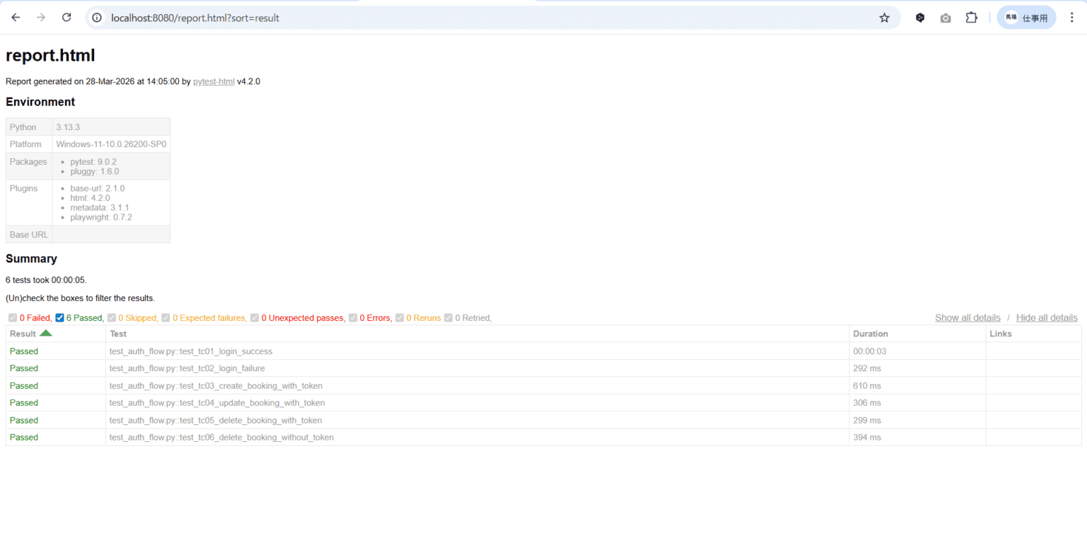 ▲ report.html — 0 Failed / 6 Passed / total 5 seconds