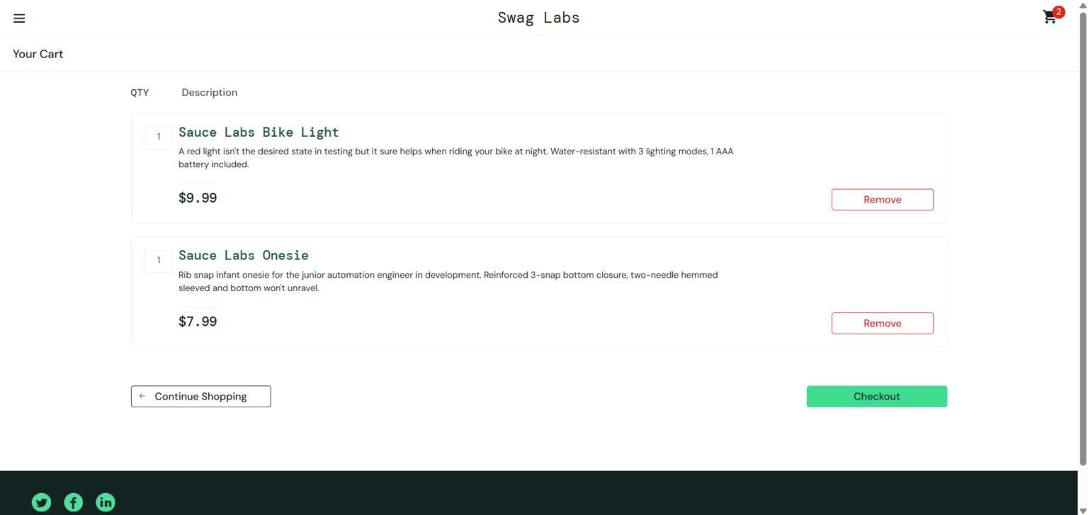▲ 장바구니에 2개의 상품이 올바르게 추가된 것을 확인(TC-06)